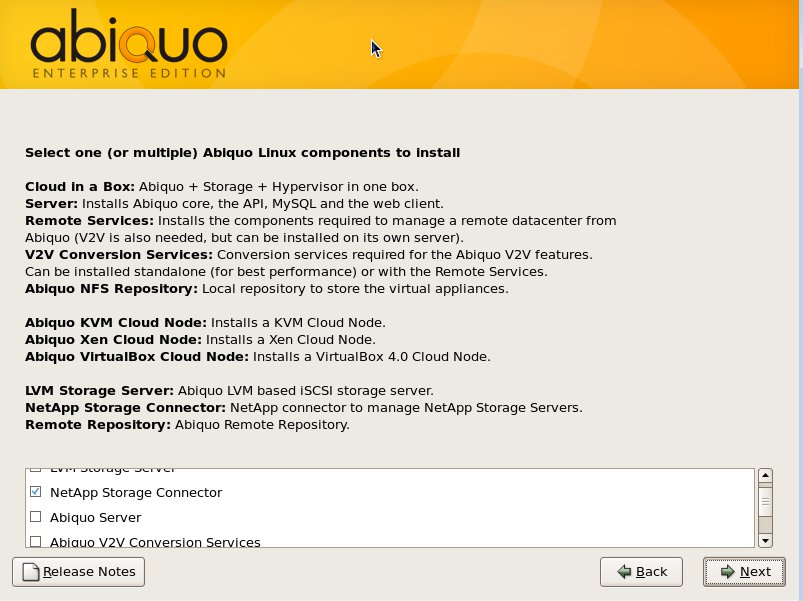 - El nuevo instalador merece un caso aparte! Una ISO basada en Centos 5.6 que permite instalar (O upgradear desde la versión anterior) con pocos clicks de ratón y con herramientas para checkeo y gestión de propiedades. Instalar abiquo nunca fue tan fácil.